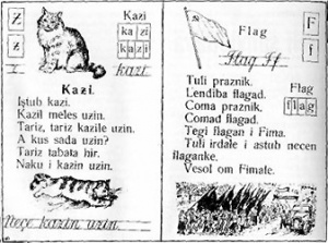 В 1930-е существовала письменность на латинской основе, использующая следующий алфавит[2]: